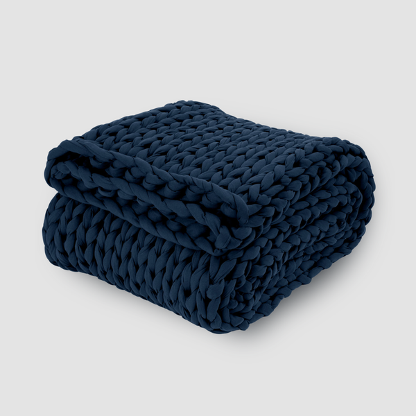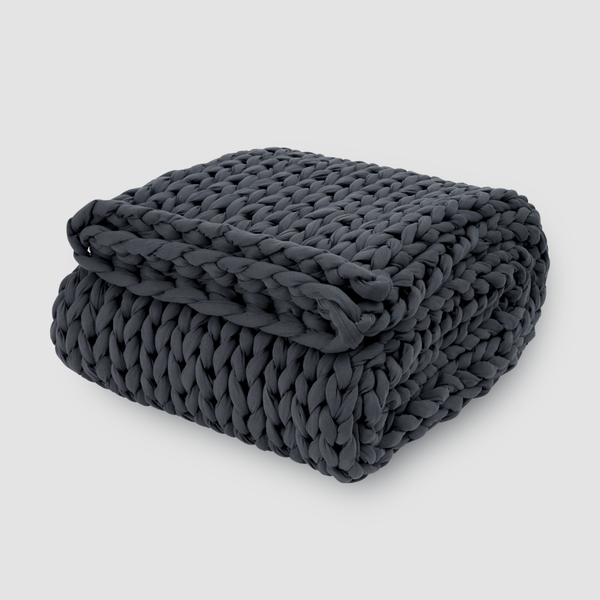 Our weighted blankets get their weight only from soft, sustainable fabric, which is hand-knitted to create evenly dispersed weight across your full body. The weight on your body stimulates the production of serotonin (the happy hormone), reduces cortisol (the stress hormone), and increases melatonin, helping you fall (and stay) asleep naturally.