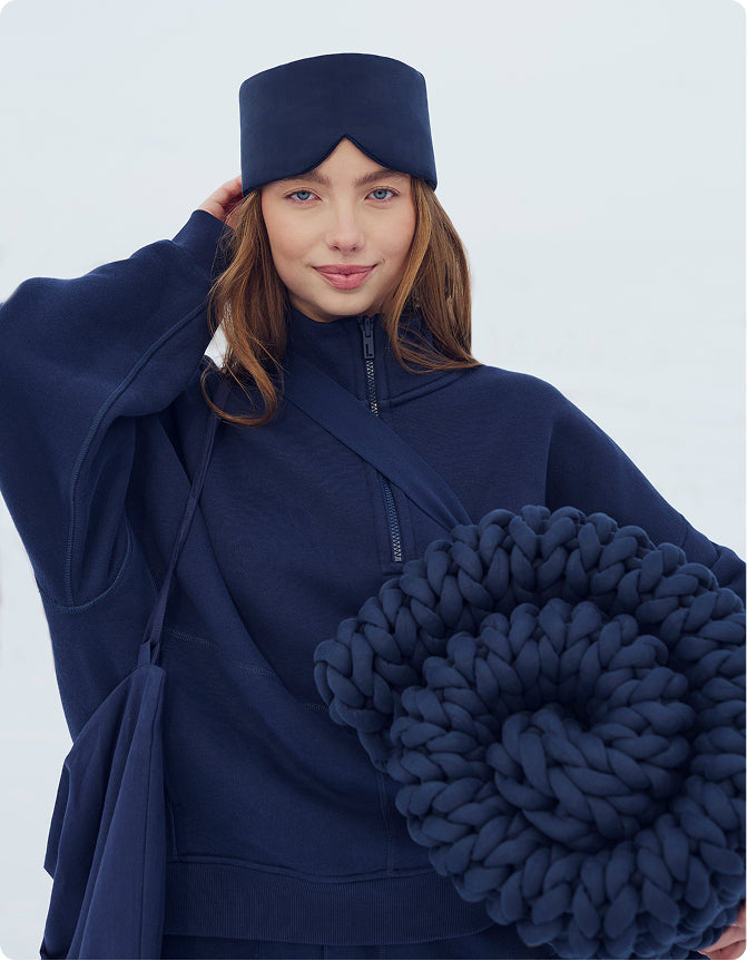 A gently weighted sleep mask that cradles your eyes and blocks out light to help you drift off.