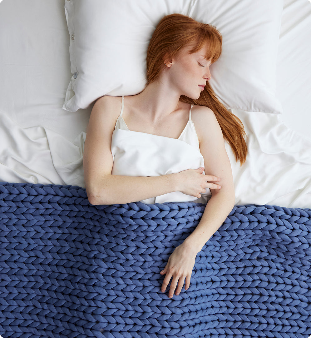 Made from soft, sustainable materials, our weighted blankets help you drift into a calmer state and a more restful sleep.